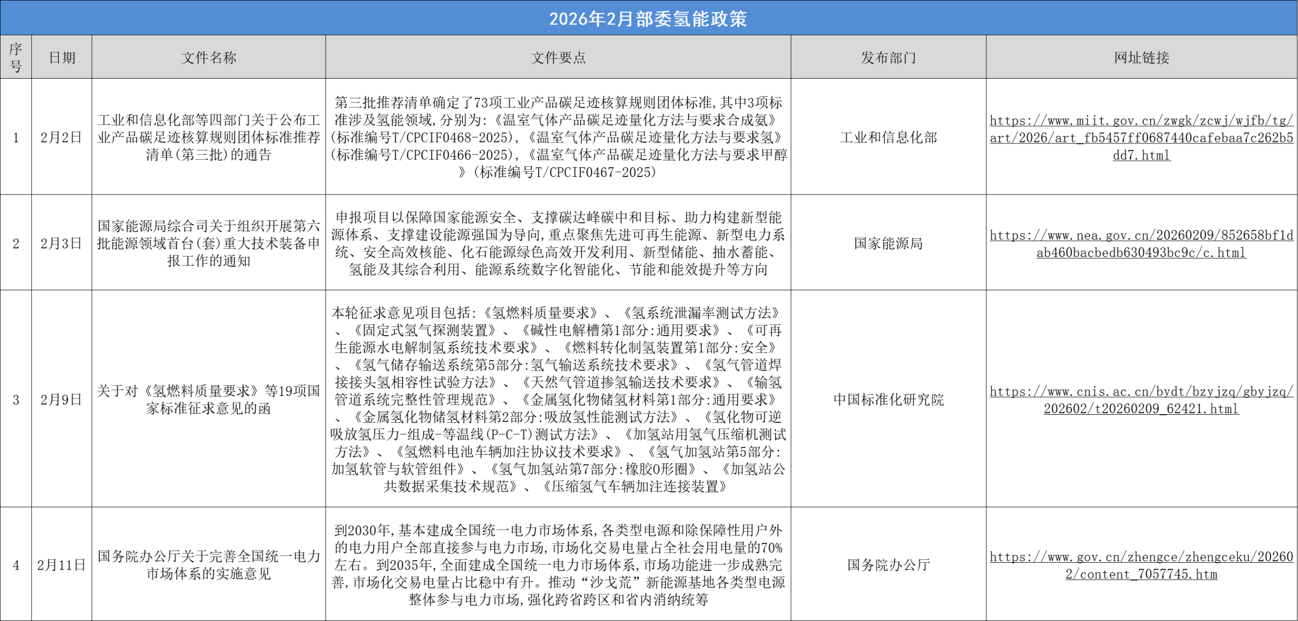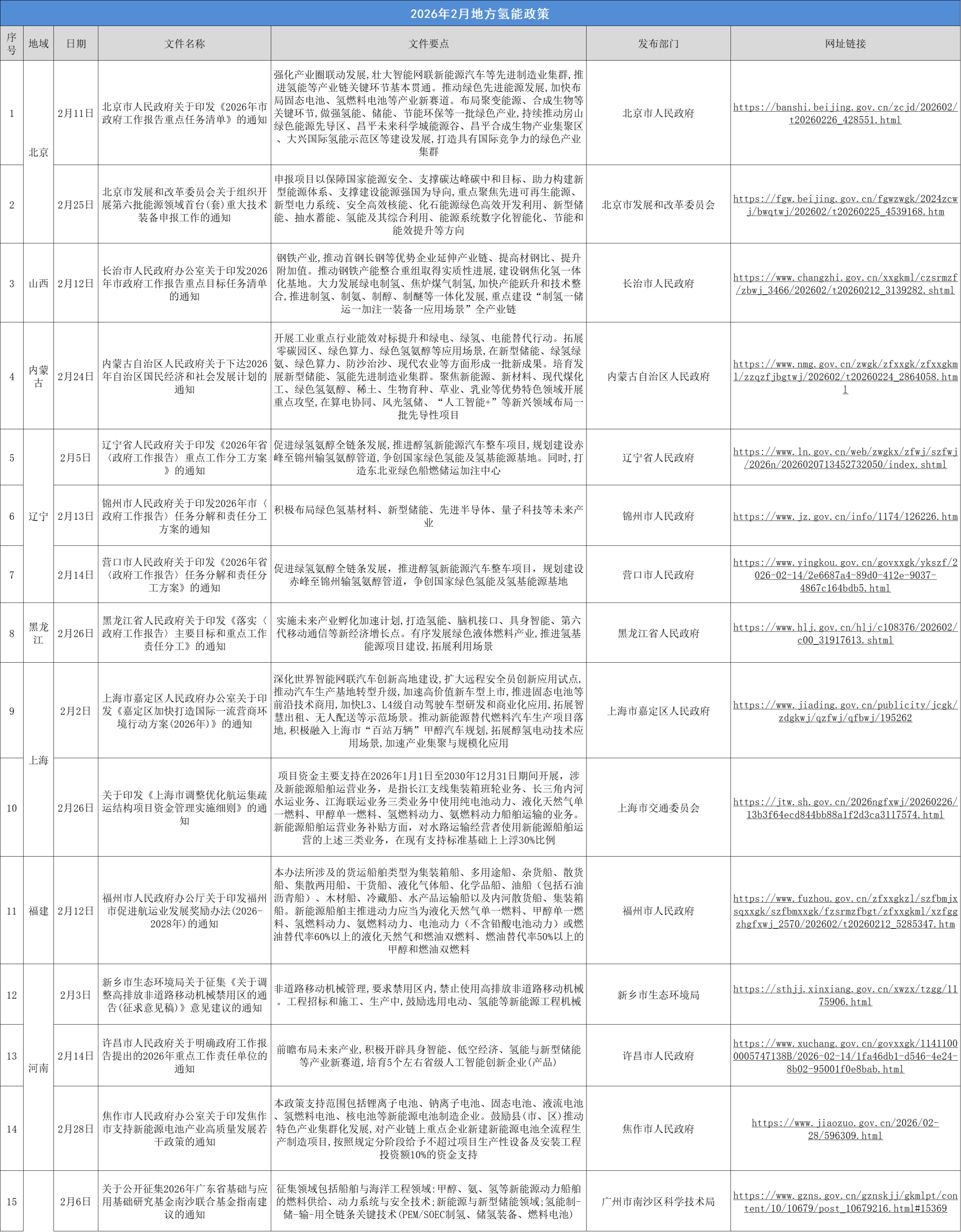 2026年2月,国家部委有4项氢能政策出台,有15个省(市)明确提出26条大力发展氢能的政策。